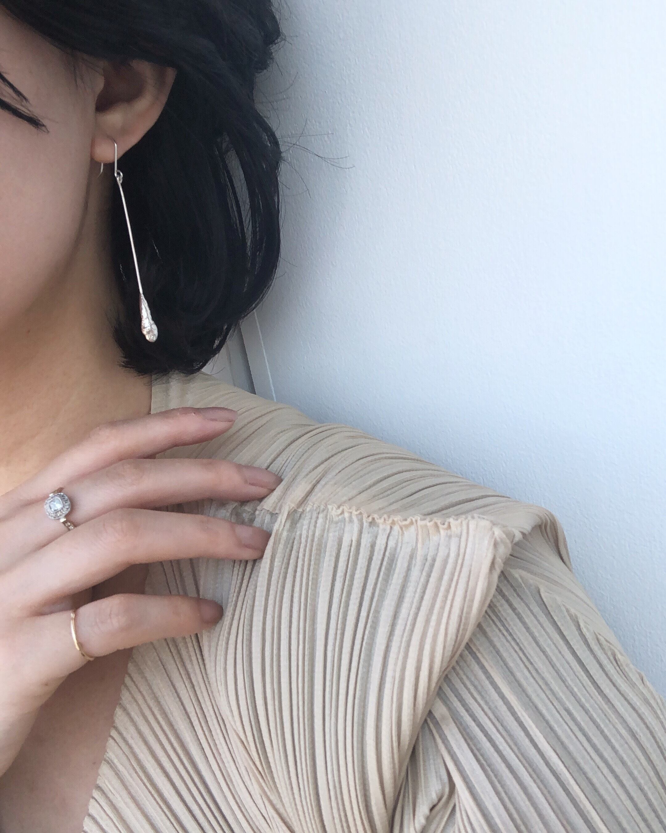 連なるバーが耳元から揺れるデザイン。